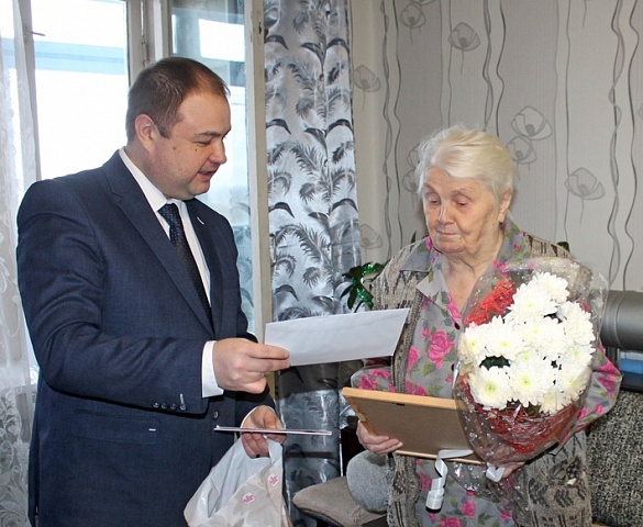 Со знаменательной датой труженицу тыла, вдову участника Великой Отечественной войны поздравил глава города Алексей Карамышев и вручил поздравительные открытки от Президента России Владимира Путина, депутатов Костромской областной Думы Василия Комиссарова и Александра Плюснина, а также подарки и цветы.