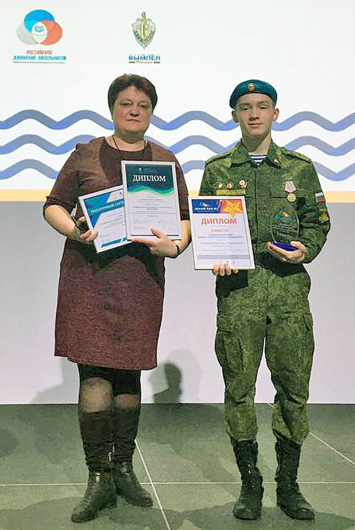Поддержку своему воспитаннику оказывала педагог и руководитель военно-патриотического клуба «Стяг» Ирина Николаевна Шунейко.