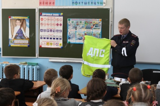 Утро 18 сентября для второклассников и четвероклассников школы № 7 было необычным. К ним в гости пришел старший инспектор ГИБДД капитан полиции Владимир Евсиков.
