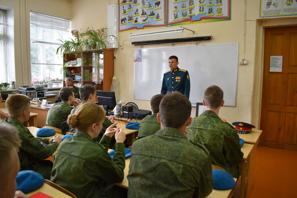 - Я учился в этой гимназии. Меня учили те же учителя, что и вас. После школы я поступил в военную академию радиационной, химической, биологической защиты имени маршала Советского Союза С.К.Тимошенко. Первые курсантские годы были непростыми. Закончив учебу в РХБЗ, по распределению попал в Росгвардию. Я участник спецоперации на Украине. Наша задача - обеспечение радиационного контроля. До начала специальной военной операции на Украине я, честно скажу, как-то поверхностно относился к таким понятиям как Родина, Отечество, Мать. Сейчас я знаю точно, что нужно ценить то, что вы имеете, ценить каждый момент своей жизни. Любите и уважайте своих близких и побольше проводите с ними времени. Может быть, покажется странным, на первый взгляд, но наша победа куется именно здесь, в этих стенах, где я сидел за партой. Мы обязательно победим. Почему? Потому что правда за нами. Читайте больше отечественной литературы. Изучайте биологию, физику, химию, обществознание. В жизни это очень пригодится. Русские сильны духом. Я смотрю на вас и вижу, как новое поколение героев выйдет из стен школы и станет такими же, как мы. Верьте в себя, у вас все получится. Поставьте цель и идите до конца.