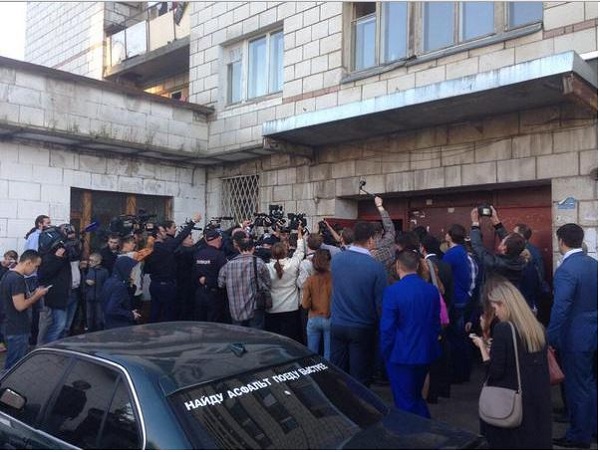 К штабу приехал оппозиционер Алексей Навальный.