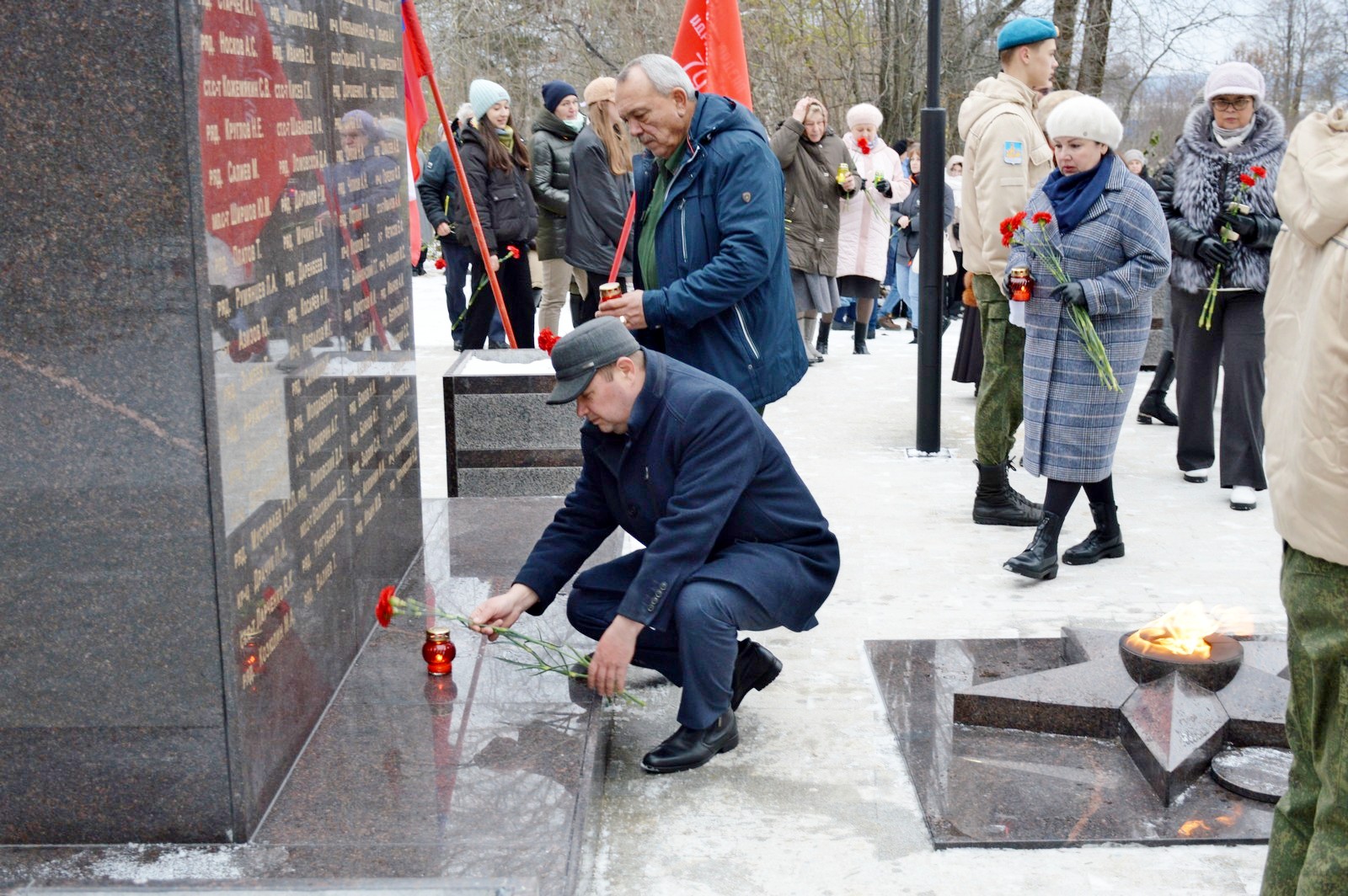 В этот день Вахту Памяти у Вечного огня мемориала несли воспитанники военно-патриотического клуба «Стяг» гимназии №1.