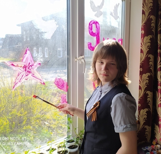 "Мы с радостью приняли участие в акции "Окна Победы", в это непростое для всех время мы воедино можем не выходя из дома присоединиться к тысячам россиян и украсить звездами, голубями и георгиевскими лентами свои окна. Наши дети, словно юные художники на стеклянном мольберте могут выразить чувства благодарности нашим предкам за Великую Победу".
