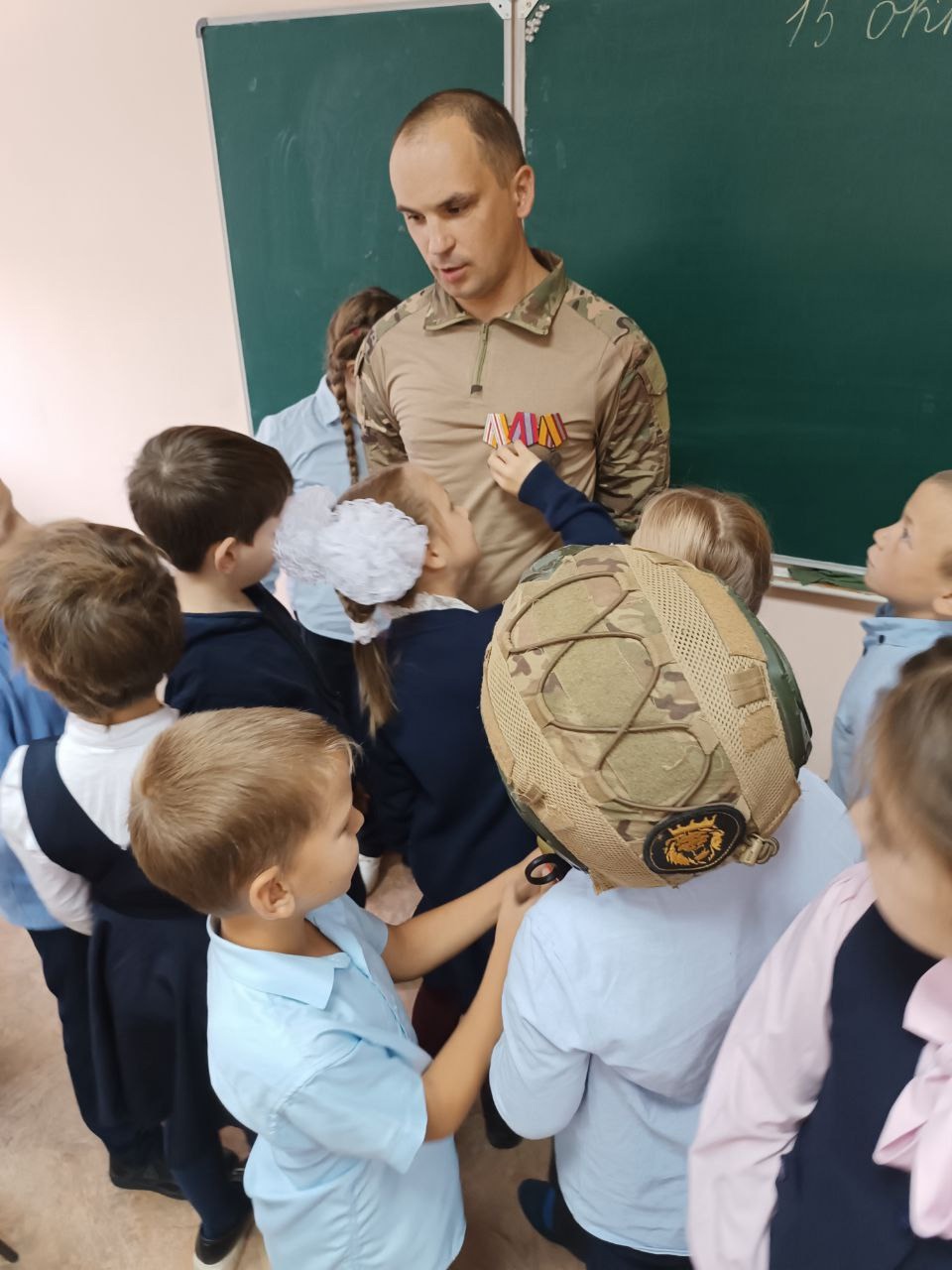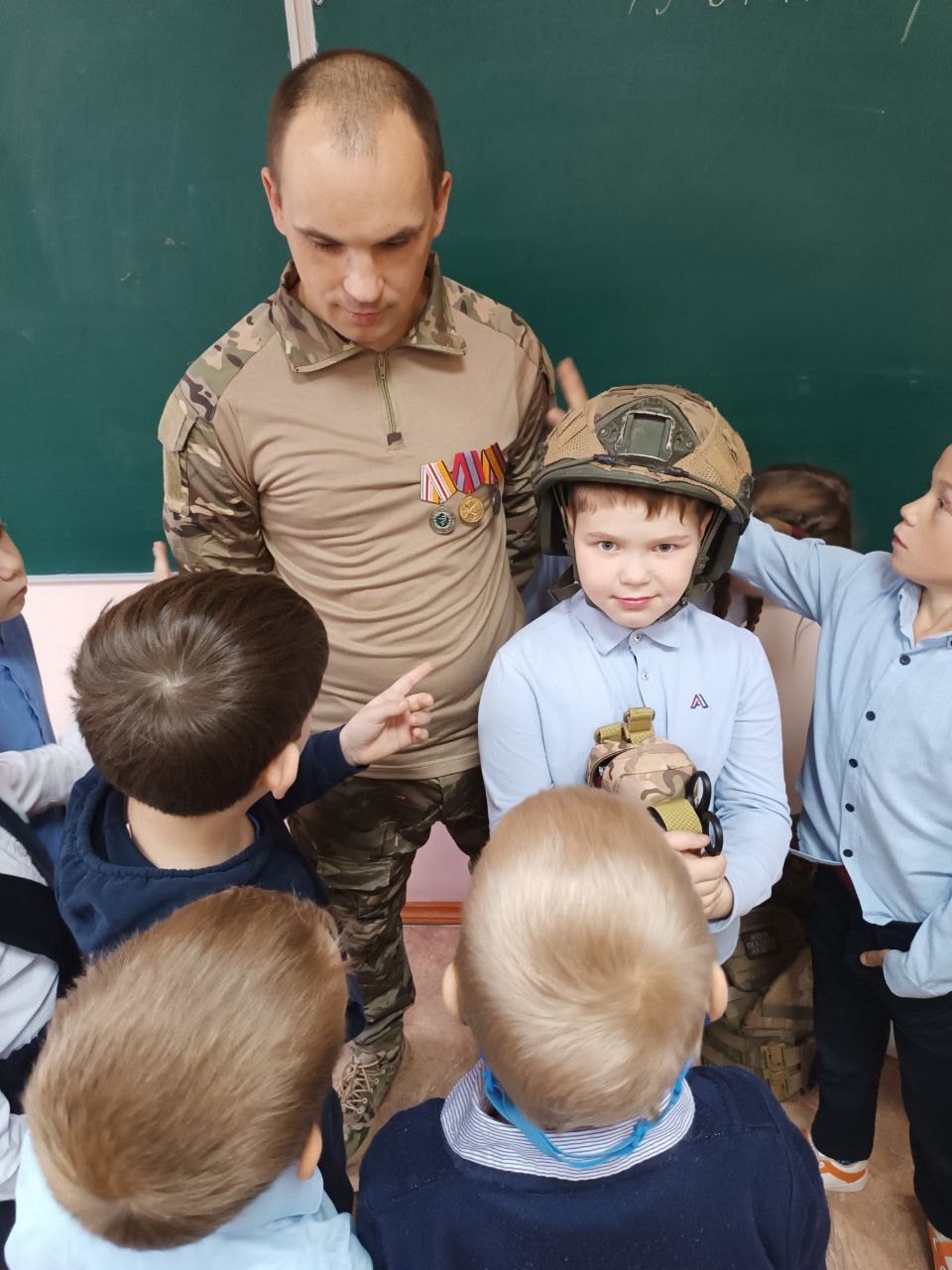 Татьяна Дурнова: «Ребята задавали военнослужащему вопросы: «Расскажите о самом запоминающемся случае Вашей службы», «Приходят ли Вам и Вашим сослуживцам детские письма» и другие. Александр ответил на все вопросы школьников и пожелал им крепкого здоровья, успехов в учёбе и всех начинаниях, а также напомнил, что значит любить Родину и быть патриотом своей страны, чтобы в дальнейшем они тоже смогли охранять нашу родную землю и её жителей. Ребята тоже пожелали скорейшего возвращения домой. От себя добавлю -