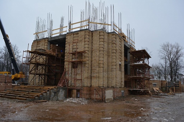 В ближайшее время строители приступят к возведению второго яруса всего комплекса, заливке железобетонных каркасов для колонн собора и колокольни. Всего в комплексе будет построено 58 колонн.