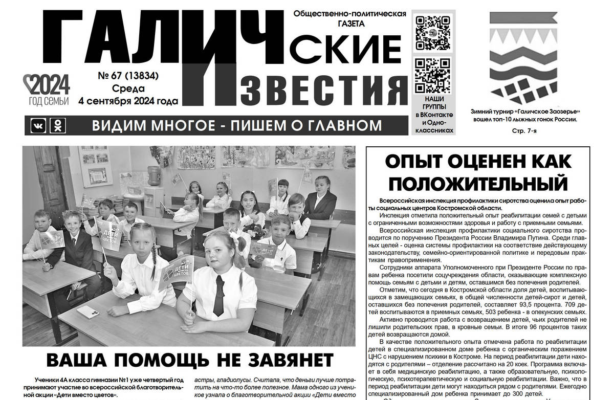 04 сентября вышел очередной номер (№67) газеты "Галичские известия". Что интересного? Читайте в этом номере газеты: