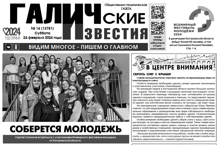 24 февраля вышел очередной в 2024 году номер (№14) газеты "Галичские известия". Что интересного? Читайте в этом номере газеты: