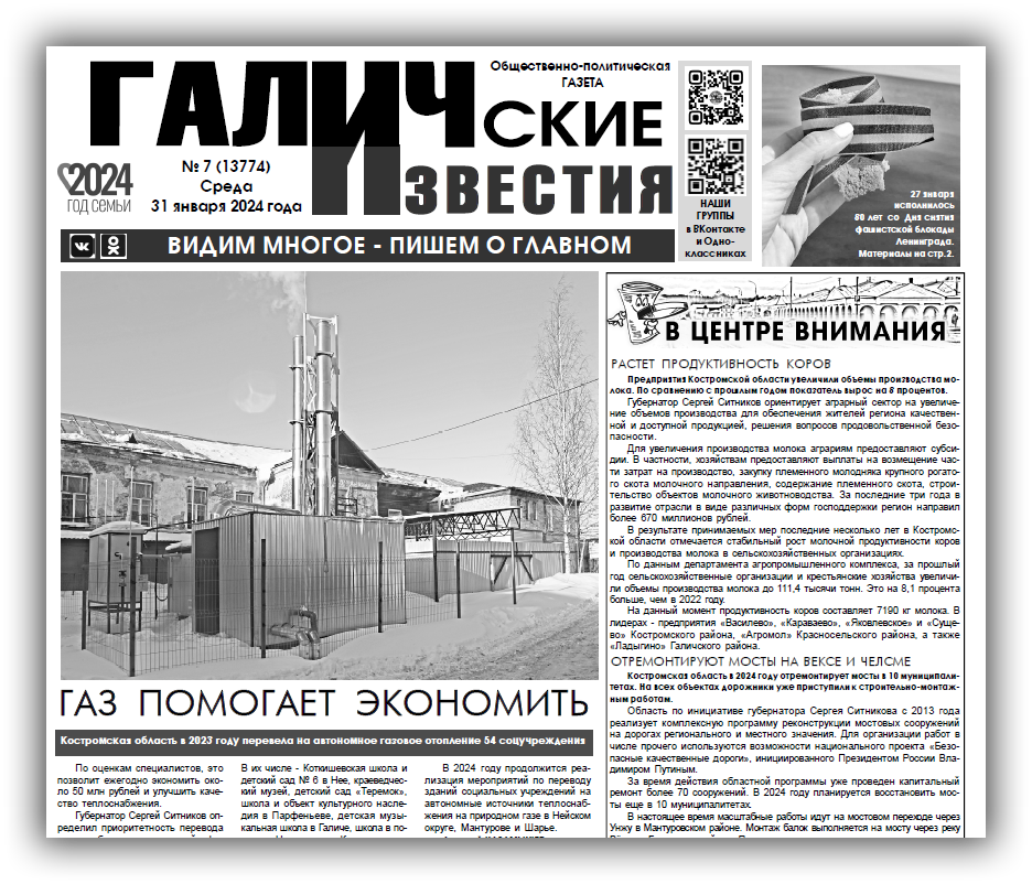 31 января вышел очередной в 2024 году номер (№7) газеты "Галичские известия". Что интересного? Читайте в этом номере газеты: