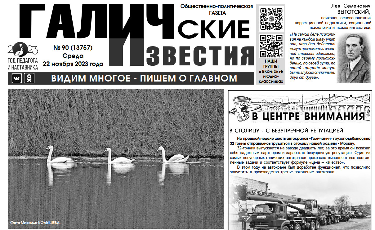Вышел новый номер (№90) газеты "Галичские известия"