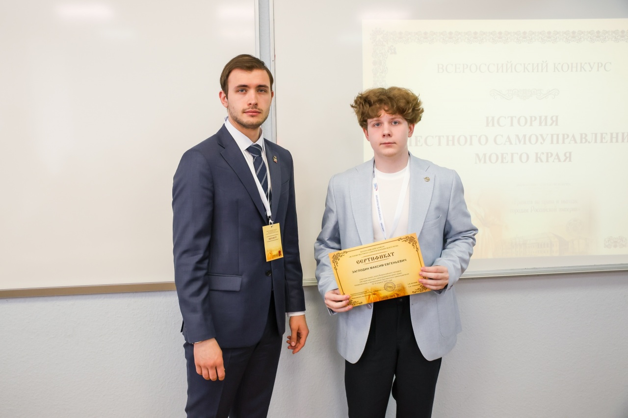 В ходе защиты гимназист привел убедительные аргументы в пользу своей позиции и доказал, что в деятельности местного самоуправления большую роль играет личность его лидера. Члены жюри признали Максима серебряным призером, но сам юноша считает важным не победу, а возможность рассказать о Галиче на большой площадке в рамках Всероссийского конкурса.Церемония награждения победителей состоялась 18 апреля в Колонном зале Дома Союзов Государственной Думы Федерального собрания Российской Федерации.