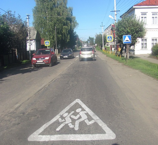 В середине августа на городских дорогах вблизи учебных заведений начались работы по обновлению дорожной разметки. Кроме пешеходных переходов из белых и желтых полос, которые предупреждают водителей о необходимости быть предельно осторожными при подъезде к нерегулируемому переходу, рабочие наносят на асфальт дорожные знаки «Осторожно, дети».