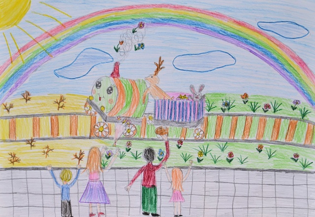 Важное уточнение: темой рисунков стали не просто проблемы экологии, а то, как они решаются на железной дороге. Она хоть и конкретней, но одновременно сложнее: далеко не все школьники знают, что конструкторы работают над усовершенствованием железнодорожных машин и обновлением технологий, чтобы сделать их более безопасными для окружающей среды. Не каждому дошкольнику понятно назначение лесополосы, идущей вдоль железнодорожного полотна. Здесь на помощь маленьким художникам пришли папы и мамы, подсказав им сюжеты для рисунков. Так на бумаге появились и железнодорожники, сажающие деревья, и экопоезд будущего, и милый паровозик, у которого из трубы вместо дыма вылетают цветы.