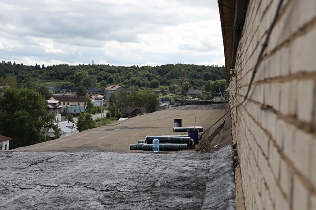 Крыша основного здания состоит из двух частей: центральной - стропильной, с чердачным помещением, крытой железом, - и боковых плоских скатов, застеленных рубероидом. Со времени последнего ремонта крыши прошло уже полтора десятилетия. В начале 2000-х его провели рабочие ООО «Модуль», очень известной в свое время в Галиче строительно-ремонтной компании.
