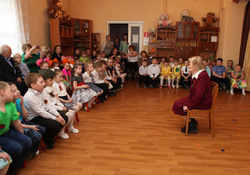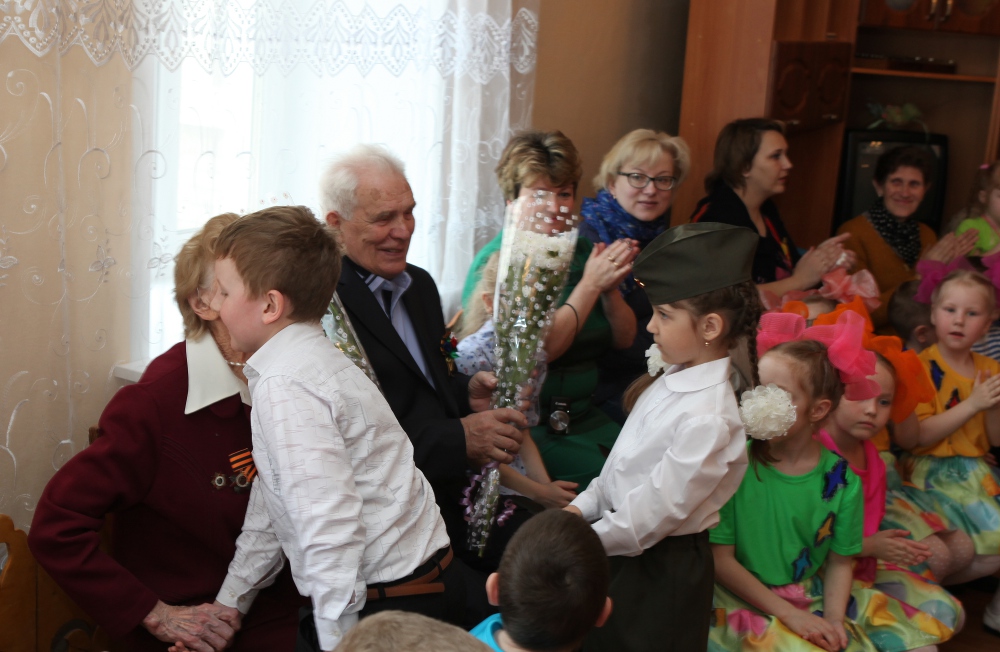 Большой добрый праздник устроили ко Дню Победы воспитатели и воспитанники детского сада №13. Пять старших и подготовительных групп представили лучшие музыкальные номера, объединенные темой Победы. Антонину Николаевну Лебедеву и Геннадия Васильевича Свирко - ветерана, жителя блокадного Ленинграда, встречали в ярких платьях с бантами девочки, в белых рубашках - мальчики. Стихами, песнями и танцами благодарили дети тех, на чьи плечи легли тяготы войны и голодного послевоенного времени. В ответном слове Антонина Николаевна попросила ребят жить в мире и дружбе, слушаться и уважать взрослых, расти защитниками своей страны.