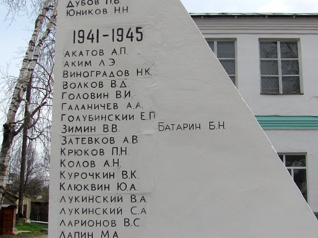 На обелиске с именами выпускников, погибших на полях сражений Великой Отечественной войны, что стоит у школы №4, в победные майские дни появилось еще одно имя: Борис Батарин.