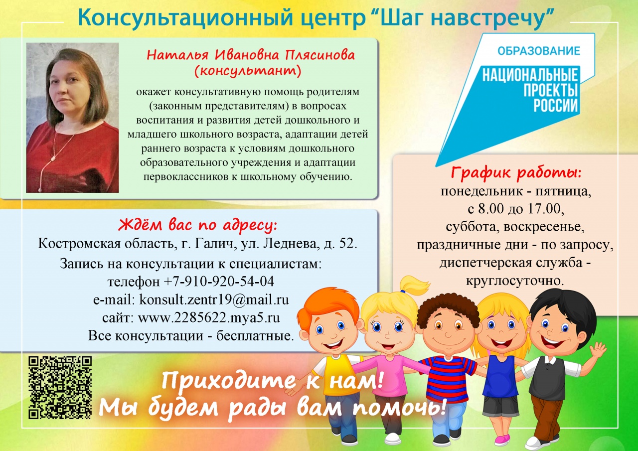 В Галиче с 2019 года на базе детского сада № 8 открыт Консультационный центр «Шаг навстречу», созданный при поддержке Федерального проекта «Современная школа» национального проекта «Образование».