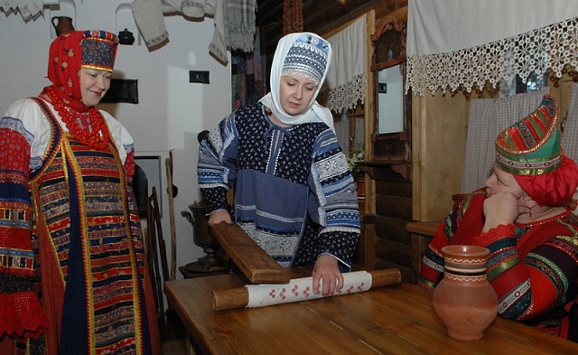 В Музее деревянного зодчества под открытым небом ребята увидели, как жили крестьяне век и два назад: деревенскую улочку с крестьянскими избами и церквушками. В одном из домов ребят встретила приветливая барышня-крестьянка. Она научила гостей варить кашу в чугуне, гладить белье утюгом с углями и деревянным рубелем.