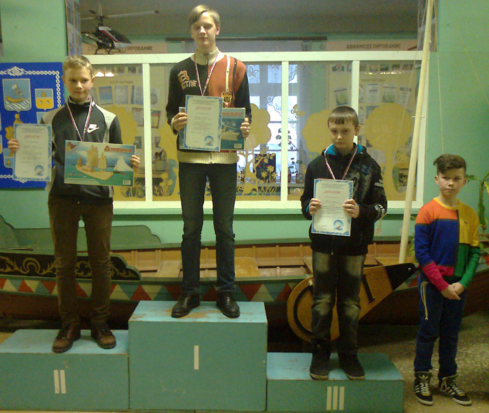 По классу радиоуправляемых моделей первым стал Даниил Кузьминов, а вторым - Тимофей Корсаков.