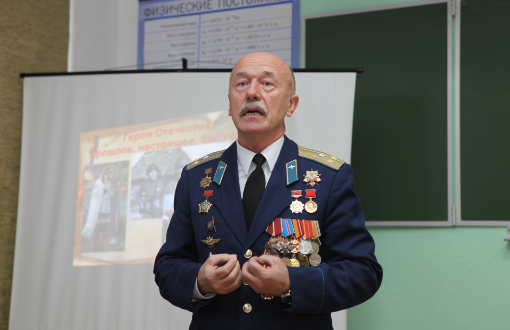 В канун Дня Героев Отечества в родной школе №4 побывал ее выпускник 1974 года, летчик, боевой командир, кавалер Ордена Красной Звезды и Ордена Мужества полковник в отставке Виктор Леонидович Веселков.