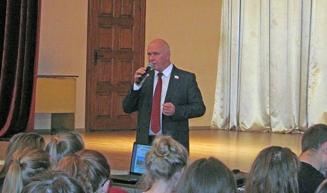 «Вы все скоро встанете перед выбором. Настало время, когда надо думать о родителях, о судьбе родной земли, делать выбор в их пользу. 1 декабря вы должны окончательно определиться с выбором экзаменов. Советую записаться на большее количество дисциплин, отказаться вы потом всегда успеете. А сданные предметы увеличат ваш шанс на поступление. Мы ждём вас. Мы будем рады вашему выбору. Ведь выбирая направления нашего вуза, вы, безусловно, выбираете будущее нашего края, его развитие и благополучие», - приветствовал школьников Сергей Юрьевич Зудин.