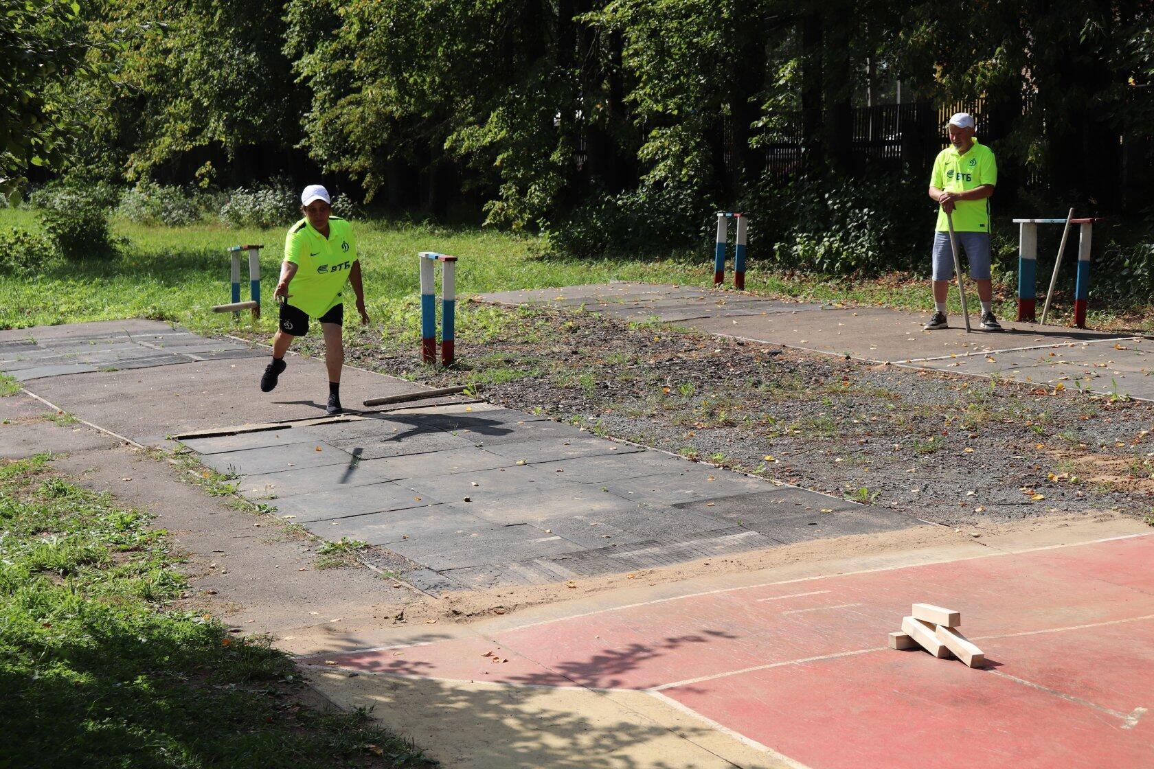 В Шарье на спартакиаде, посвященной 100-летию городошного спорта, мы выступили тремя командами. Участникам предстояло выбить из «города»-квадрата «два на два» битой городки (отрезки палок по 20 сантиметров), расставленные в виде разных фигур: «пушка», «вилка», «звезда», «стрела» и других (всего 15).