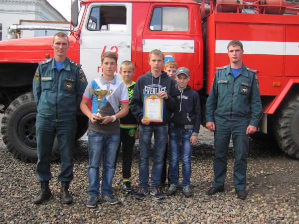 Четвертый год возвращаются наши огнеборцы с победой, занимая почетные места. Дважды вместе со взрослыми ездила и детско-юношеская команда. Юные пожарные Юрий Бойцов, Андрей Судаков, Иван Волков и Семен Макаров выполняли те же задания, что и профессионалы, соревнуясь со своими сверстниками.