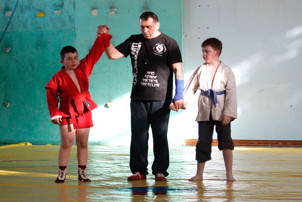 7 мая на базе ФОКа «Юность» прошло Первенство города по боевому самбо среди детей, посвященное 70-летию Победы в Великой Отечественной войне. Соревнования собрали более тридцати юных борцов разного возраста. Победители и призеры Первенства были награждены дипломами и медалями. Понаблюдать за спортивными успехами своих детей и поддержать их во время схваток смогли и родители, которые остались довольны уровнем подготовки начинающих спортсменов.