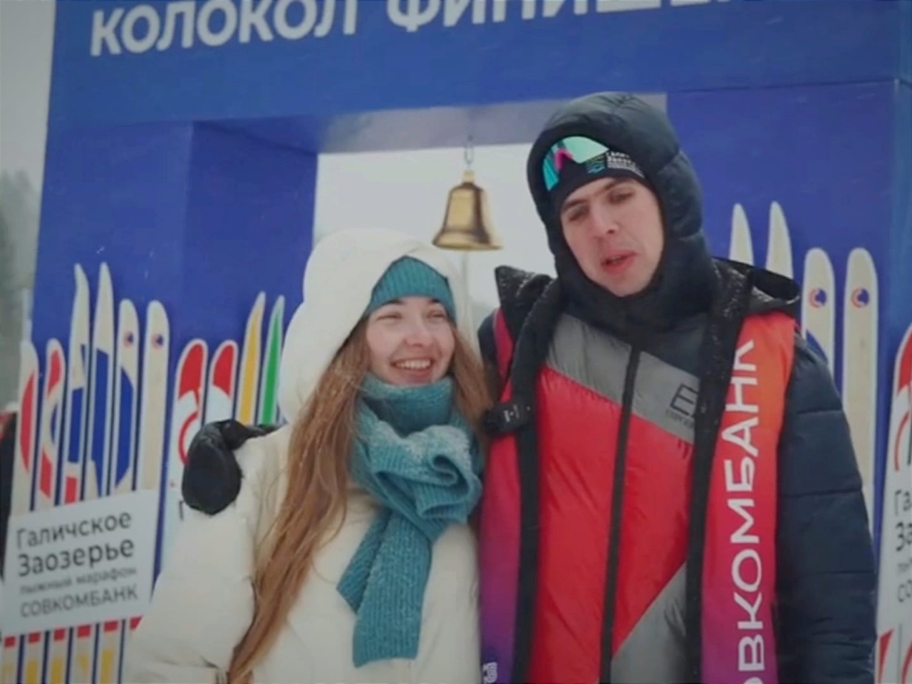 Москвич Дмитрий Никонов вышел на старт турнира второй год подряд. В нынешнем году в Галичский район он отправился не один, а с любимой девушкой, Марией. Оба они – сотрудники компании Совкомбанк – титульного партнера лыжного турнира «Галичское Заозерье». Дмитрий выступает в составе своей корпоративной команды, а Мария поехала его поддержать, даже не подозревая, какой сюрприз молодой человек приготовил ей на финише.