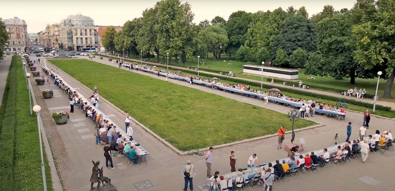 Историческое событие произошло 23 июля у Театра юных зрителей имени А.А. Брянцева на Пионерской площади. В стройные ряды выстроились 350 столов с шашечными досками.