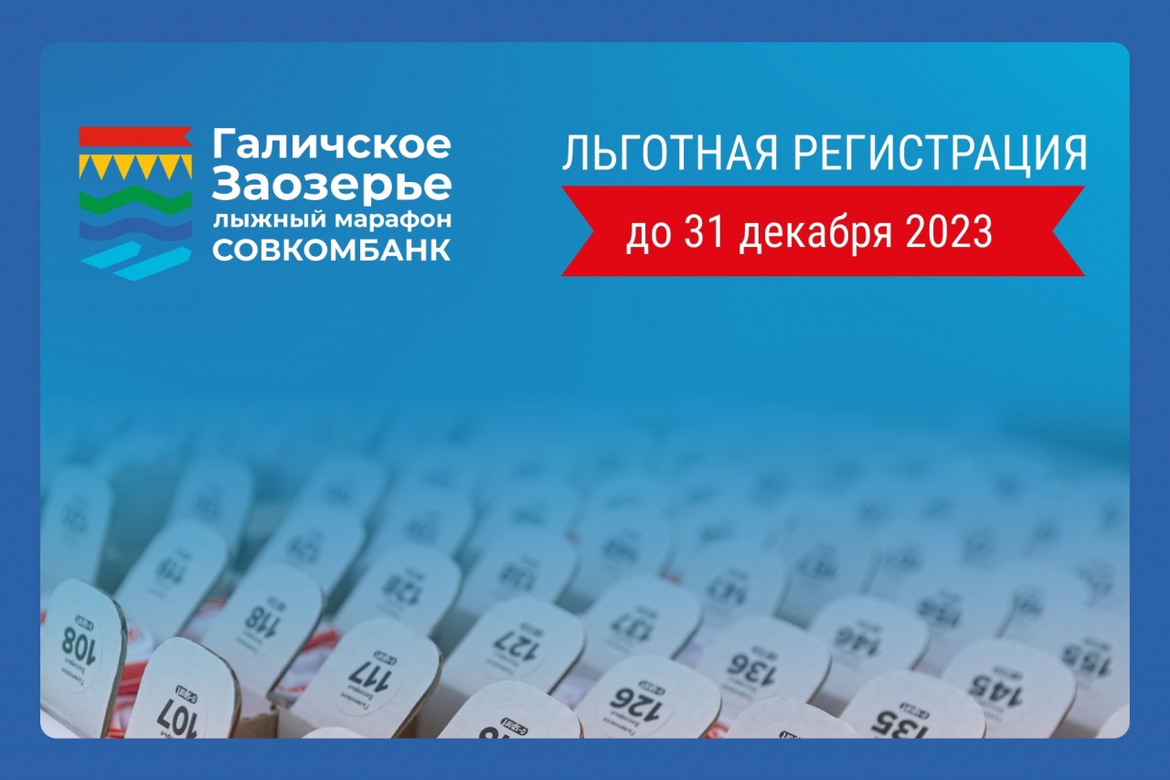 По сложившейся традиции регистрация на любую из дистанций “Галичского Заозерья: Лыжного марафона Совкомбанк” для галичан и жителей соседних районов до 31 декабря 2023 года 23:59 (по московскому времени) БЕСПЛАТНАЯ!