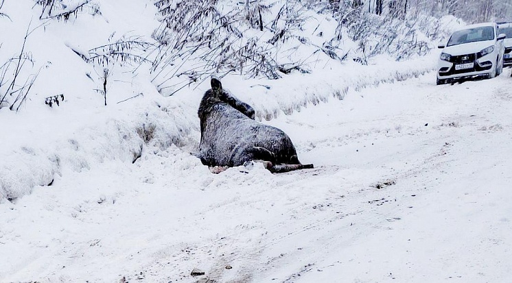 средстве в районе дер. Курьяново совершил наезд на дикое животное (лось), после чего скрылся с места ДТП. В результате столкновения лось получил сильные травмы и остался на обочине.
