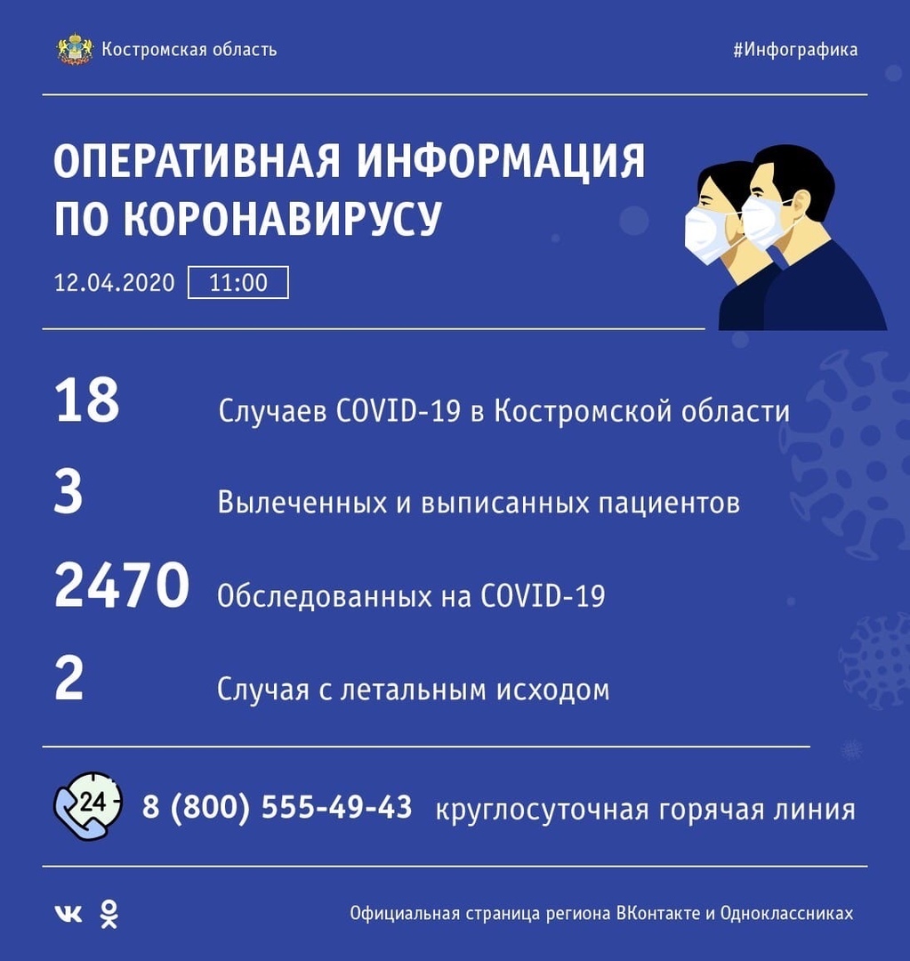 Еще 3 случая заболевания коронавирусом подтверждено в Костромской области.